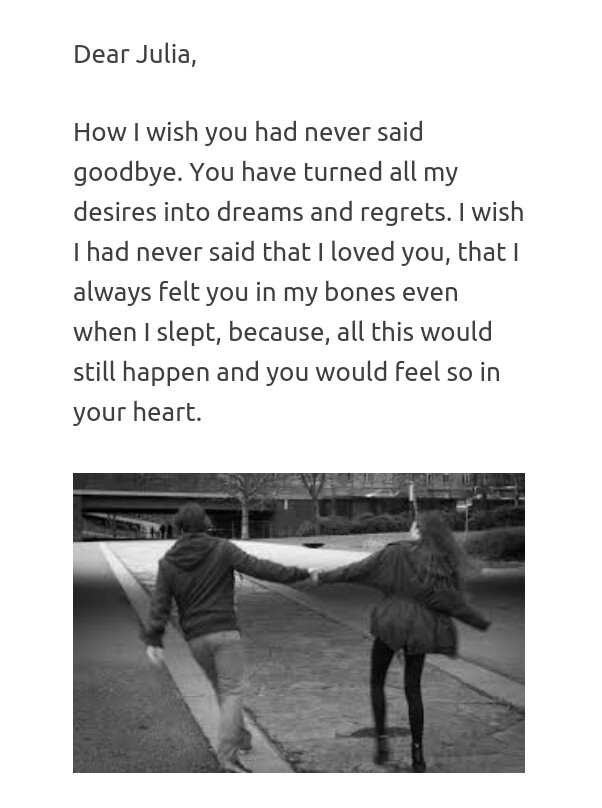 It’s me, Julia. I hope you still remember me. I hope I don’t need to re-introduce myself to you. That would simply be sad. Sadder than me while writing this letter to you. I hope all is well, and that you are happy. I always did want the best for you. Remember?